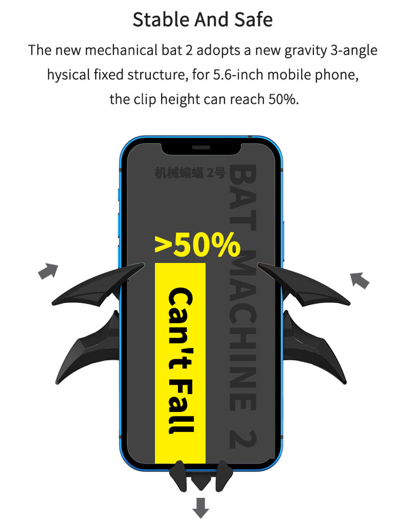 Upgrade your car interior with this unique and highly functional Bat-Style Gravity Car Phone Holder. Combining a cool, futuristic design with a smart, automatic-locking mechanism, this mount provides a secure and stable base for your smartphone, ensuring easy access for navigation and hands-free calls.