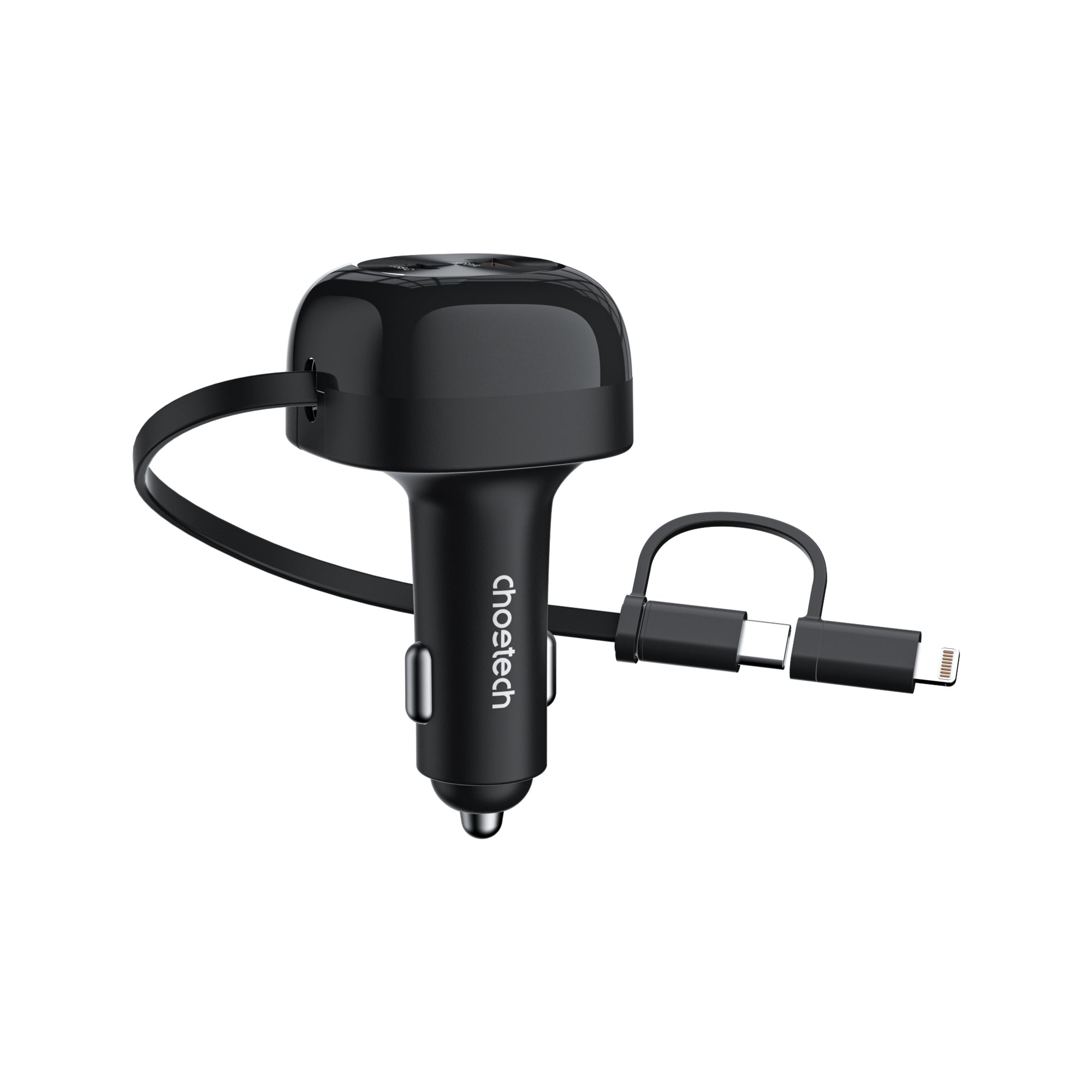 Choetech 75W Car Charger with Retractable 2-in-1 USB-C + Lightning Cable TC0036Power up on the go with the Chotech 75W Car Charger, the ultimate solution for fast and efficient charging in your vehicle. Featuring a robust 75W output, this car charger delivers rapid charging to your devices, whether you're powering up a smartphone, tablet, or other electronics. The built-in 2-in-1 retractable USB-C + Lightning cable ensures maximum compatibility with both USB-C and Lightning-equipped devices, reducing the need for multiple cables.You may return most new, unopened items within 30 days of delivery for a full refund. We'll also pay the return shipping costs if the return is a result of our error (you received an incorrect or defective item, etc.).