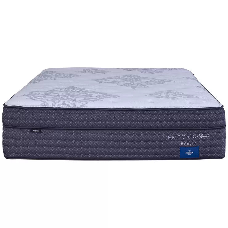 The Emporio Black Evelyn is equipped with an exclusive Silk and Cashmere blend providing optimal sleeping surface. The Evelyn features progressive comfort technology with layering of our Global Green Tag certified foams, which also includes a Visco Elastic memory foam. This combination is engineered to provide deep-down support for your body. The Visco Elastic memory foam features a strong level of body contouring while improvide overall sleep experience.
