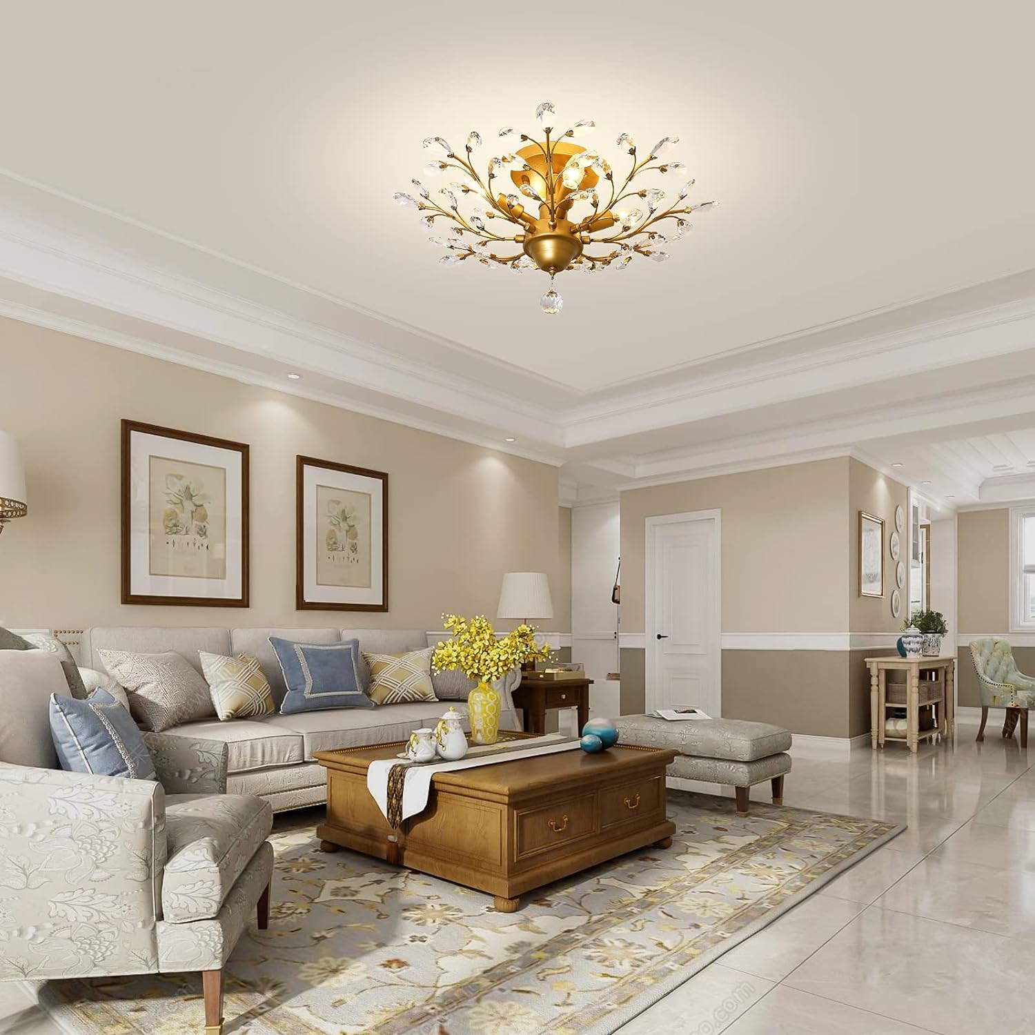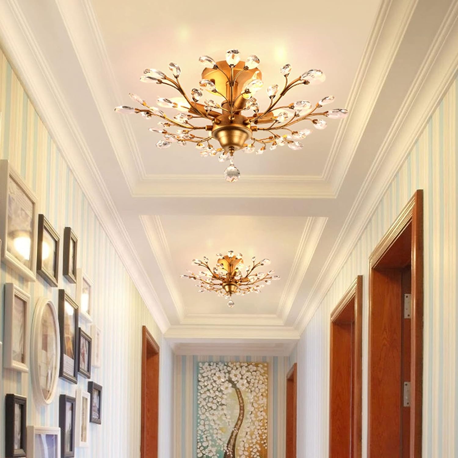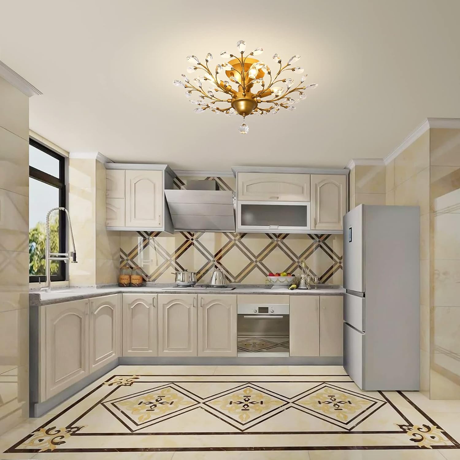 Crystal Chandeliers K9 LED Ceiling Light Fixtures, Golden