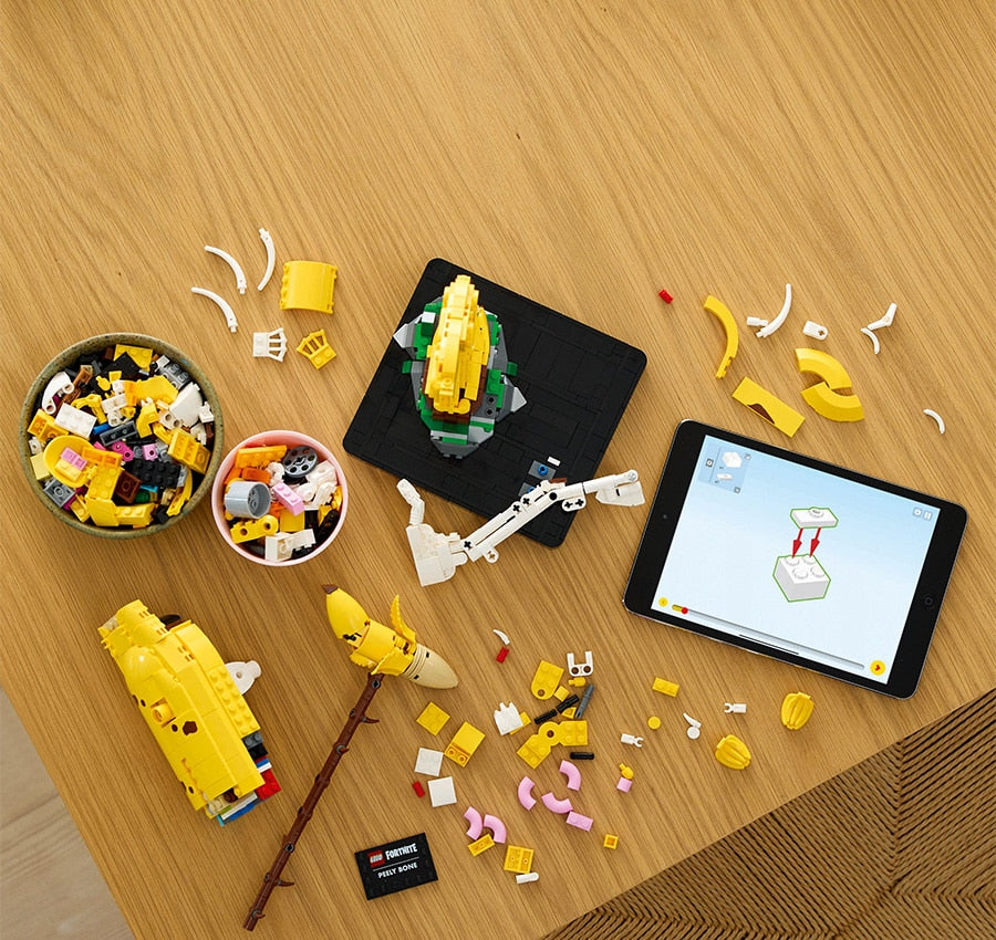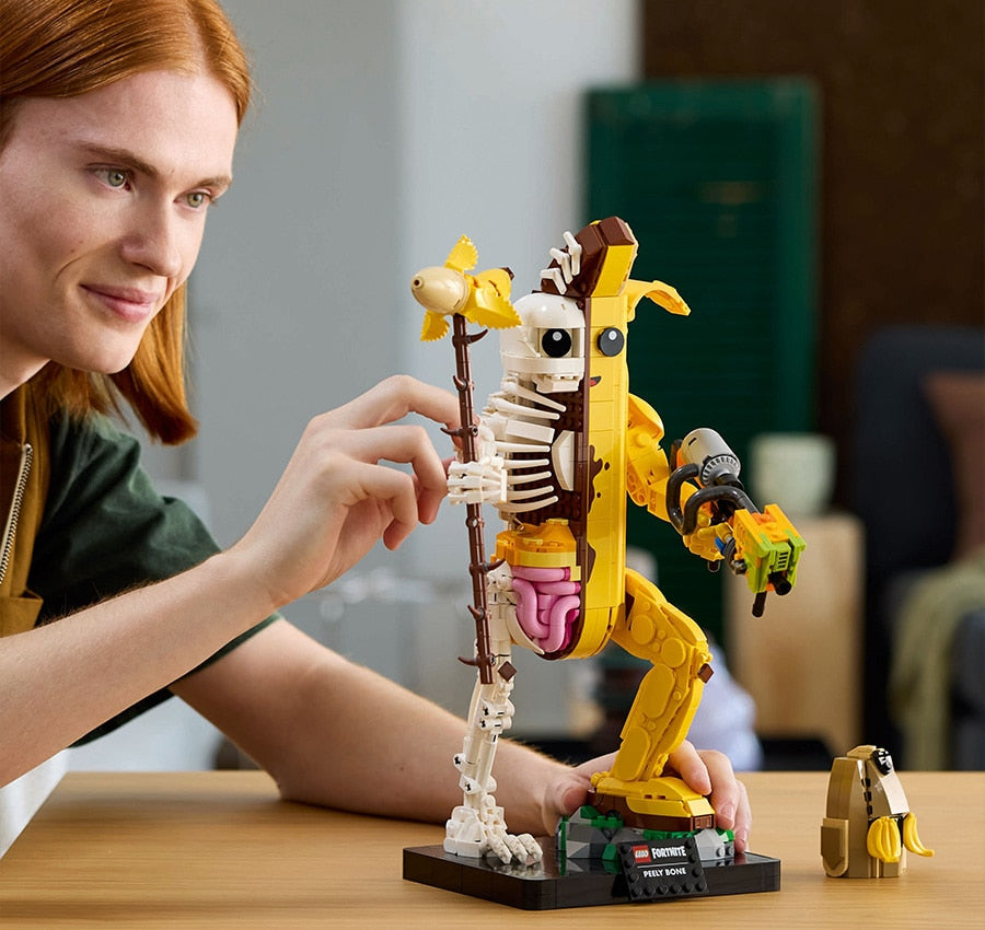 The gaming collectible features movable arms and detailed accessories. An immersive and challenging project for grown up gamers. The LEGO Fortnite figure becomes a display model for fans to showcase. 1,414 piece set includes a Peely Bone standing over 36 cm tall.