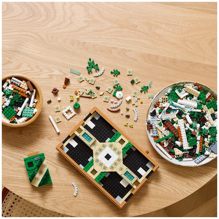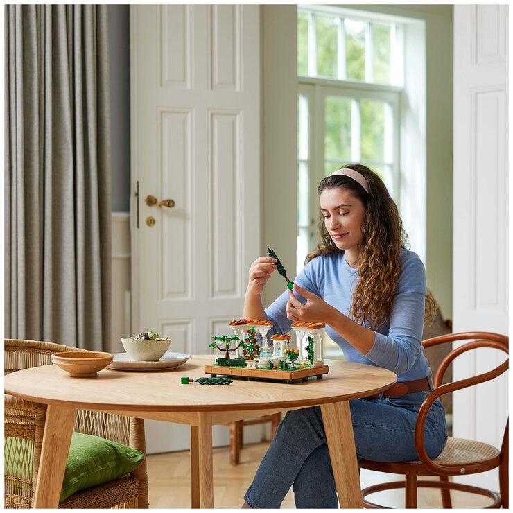 LEGO garden with a tiered fountain, lavabo, trees, plants and animal figures. Reconfigurable garden display for the home or office. A fun birthday or Christmas gift for gardeners and adult fans of LEGO building. Discover the inspiring range of LEGO creative building sets for adults.