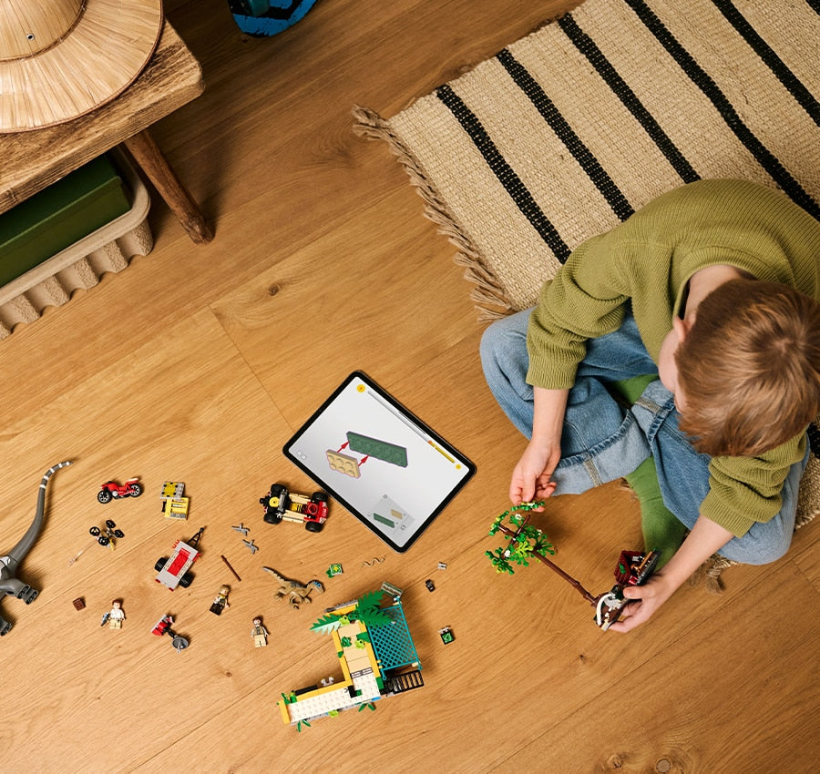 Thrilling chases and action await kids and film fans aged 7 and over in this Raptor and Titanosaurus Tracking Mission 76973 LEGO Jurassic World building kit. The dinosaur gift for boys and girls features moulded Titanosaurus and Velociraptor toy figures and 3 minifigures: Zora Bennett, Martin Krebs and Dr. Henry Loomis. The Velociraptor has a moving jaw and the Titanosaurus has a movable neck, head and tail. The interactive toy playset includes a charging station, an off-road vehicle with a trailer, a syringe case with 3 syringes, a motorcycle, buildable drone, camp area with falling tree function and more.LEGO Builder App