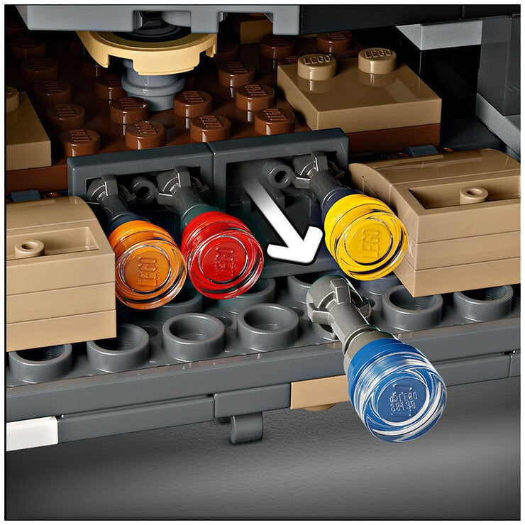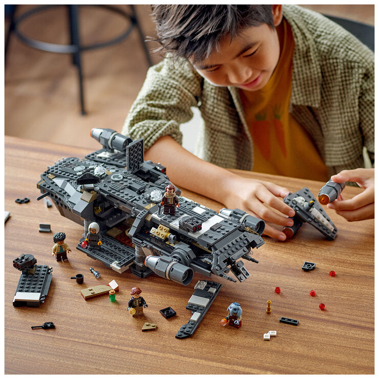 Kids become the heroes in their own Star Wars Skeleton Crew stories with a detailed LEGO brick recreation of The Onyx Cinder 75374. This collectible LEGO Star Wars buildable starship toy features rotating engines for landing/take off or flight, 2 stud shooters, 2 rotating turrets, each with 2 stud shooters and a grabbing claw. It has seats for all 5 included LEGO Star Wars characters, the Jod LEGO minifigure in the cockpit and Wim, Fern, KB and Neel in the passenger compartment, plus storage for the 4 buildable torches and other cargo. There is also a kitchen table and a bed, plus accessory elements including fruit and a walkie talkie to inspire creative play.A top LEGO gift idea for Star Wars fans and collectors of Star Wars memorabilia aged 10+, this vehicle toy building set comes with step by step instructions. Be sure to check out the LEGO Builder app for zoom and rotate digital viewing tools to add to the creative experience.