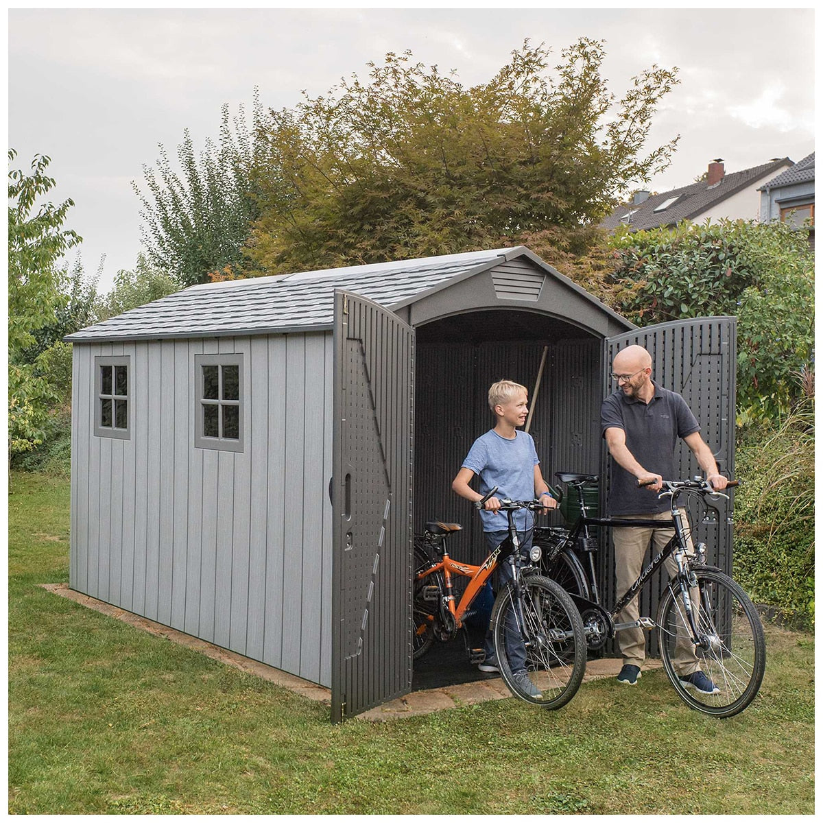DescriptionOrganize your yard, store your outdoor supplies and furniture, and stow your lawn and garden equipment more easily than ever before with the Lifetime Metal Reinforced Outdoor Storage Shed. Set up your space how you want it with height adjustable shelving and enjoy the low maintenance of a UV protected finish that protects against damage from weather and the elements. A full length ridge skylight provides rich natural interior lighting and the high pitched roof allows for quick drainage of rain and snow. The shed is made of steel reinforced high density polyethylene and a sturdy double wall system for maximum durability and longevity, and heavy duty steel trusses provide exceptional roof strength. Work in confidence on the slip resistant floor that protects you against oil, solvents, and stains, and is easy to clean just like the rest of the shed. You can also protect your gear behind lockable steel reinforced doors. With an attractive design and appearance, as well as unique Rough Cut texture that has the natural look and feel of wood without the maintenance of staining or painting, you can enjoy not just the convenience and utility of your shed but also preserve the beauty of your yard. Whether you’re looking to store some equipment or organize all of your tools, the Lifetime Outdoor Storage Shed has the features to make it feel easy and look great.