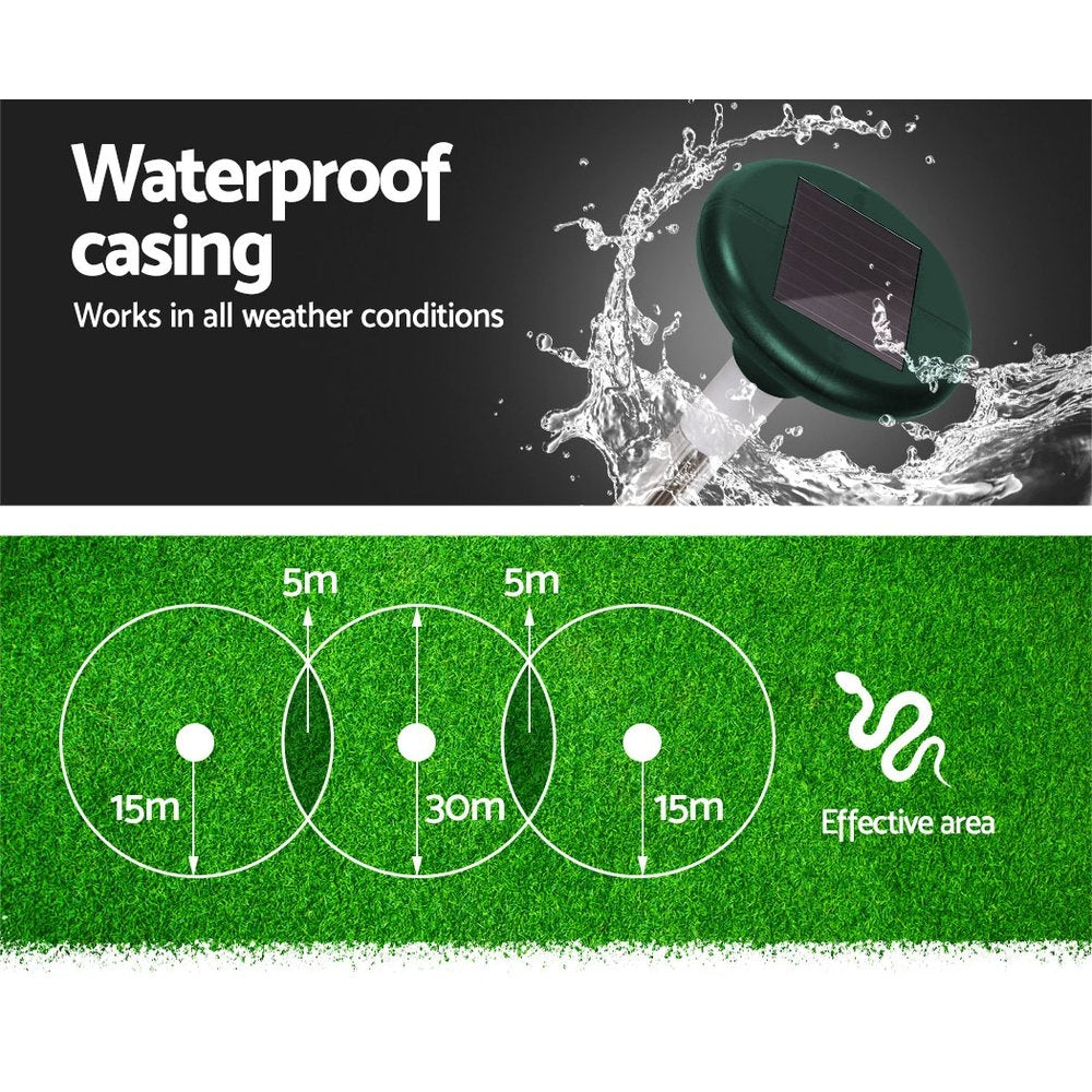 Weatherproof and chemical-free, our Solar LED Snake Repellers keep snakes out of your area without harming them by emitting sonic pulse and vibration through the ground to deter their presence. A white LED light also provides a convenient night light in your garden. You can easily set up multiple repellers to provide a barrier around your house. They are also portable to bring along to camping trips for peace of mind. Suitable for your garden, yard, farm and orchard, these solar LED snake repellers work 24/7 and are powered by a rechargeable Ni-MH battery that is charged by a solar panel.