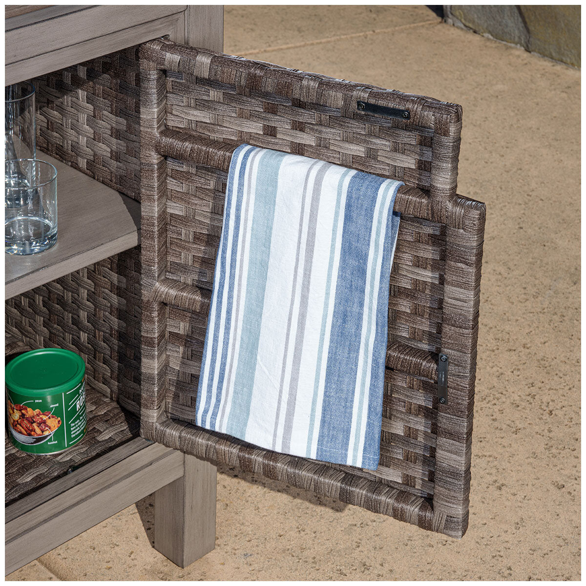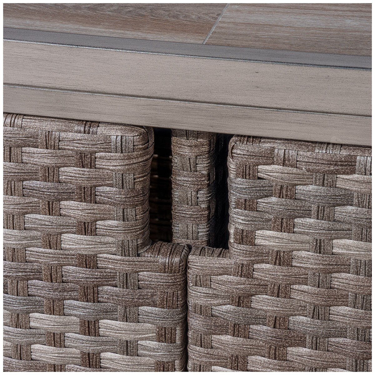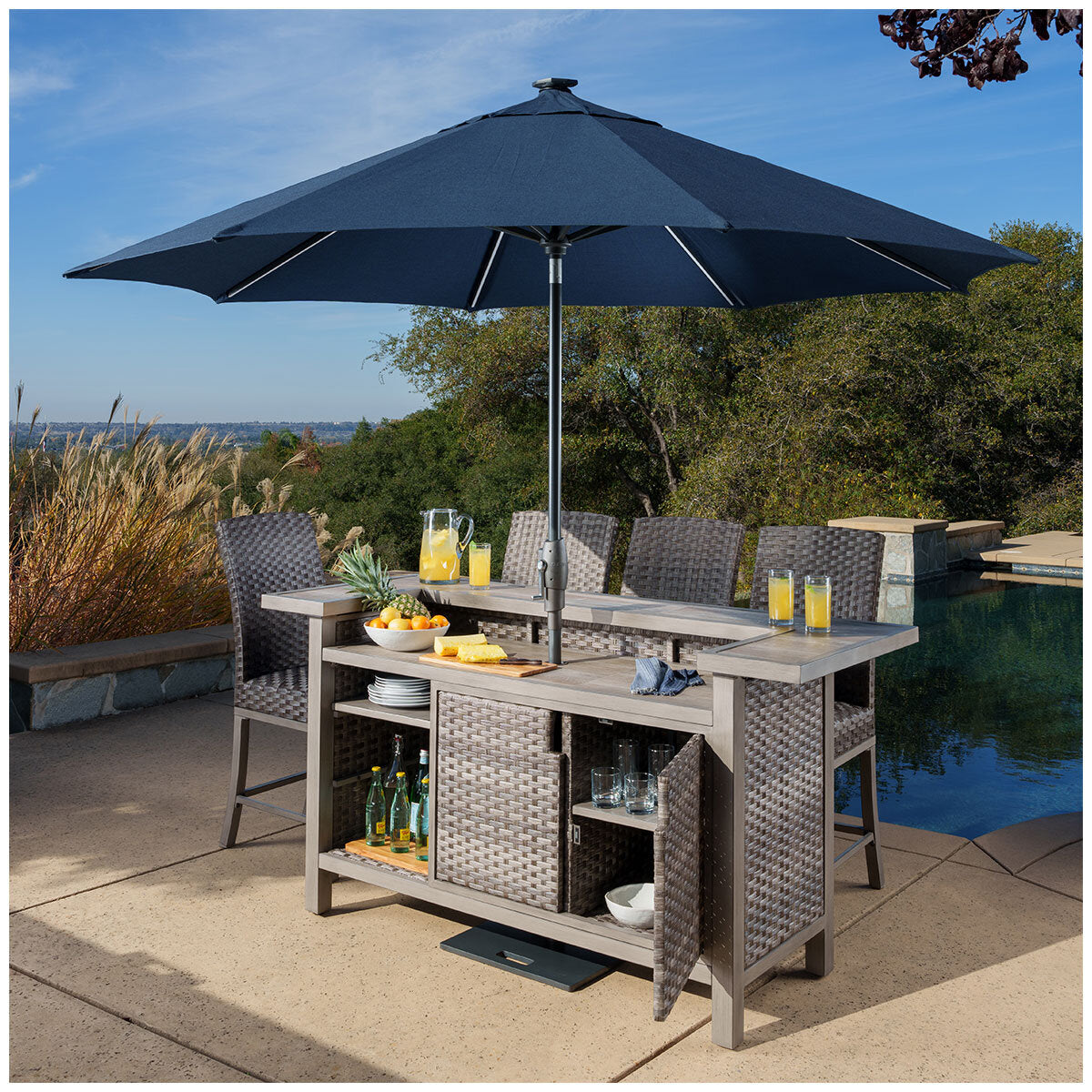 On hot days, transform the Taylor Bar into an escape from the sun by setting up an umbrella neatly in the centre of the bar, umbrella not included. Made with rust resistant aluminium frames and durable high performance resin wicker, the Taylor High Bar will continue to entertain for years to come.