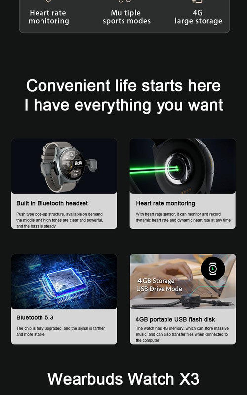 Introducing the worlds first patented smartwatch-earphone hybrid engineered to redefine convenience. No more lost earbuds or dead batteries. Your watch stores, charges, and protects your earphones, creating an all-in-one powerhouse for active lifestyles. Crafted in sleek titanium grey, it merges cutting-edge tech with rugged elegance.