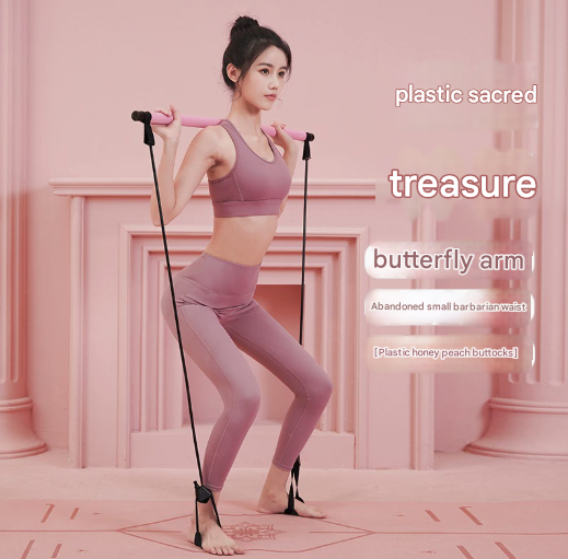 This multi-functional Pilates bar is an excellent addition to any home gym setup. The core of the rod is made from sturdy metal alloy, which prevents deformation even under strong force, while the exterior features soft foam cushioning to protect your hands. The high-elasticity latex resistance tubes offer consistent tension, making it suitable for users of various fitness levels.